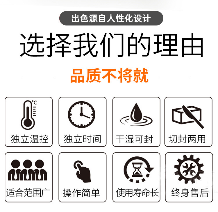 - 封口美觀度:要實(shí)現(xiàn)封口平整、無(wú)褶皺、無(wú)焦痕等美觀效果,需要精確的溫度控制和合適的功率。對(duì)于對(duì)封口美觀度要求高的產(chǎn)品,功率不能過(guò)大或過(guò)小,過(guò)大易造成焦痕,過(guò)小則封口不平整,通常 700 - 900W 的功率在合理調(diào)節(jié)下能滿足大多數(shù)此類需求。