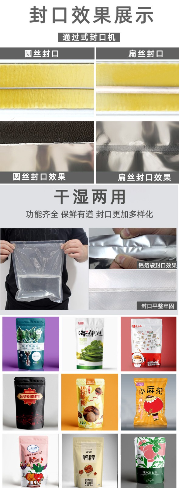 - 密封強(qiáng)度:對(duì)于一些對(duì)密封要求極高的產(chǎn)品,如食品、藥品等的真空包裝,需要封口處有很強(qiáng)的密封強(qiáng)度,這就需要足夠的功率來(lái)使包裝材料充分融合,一般建議選擇 600W 以上功率的封口機(jī)。