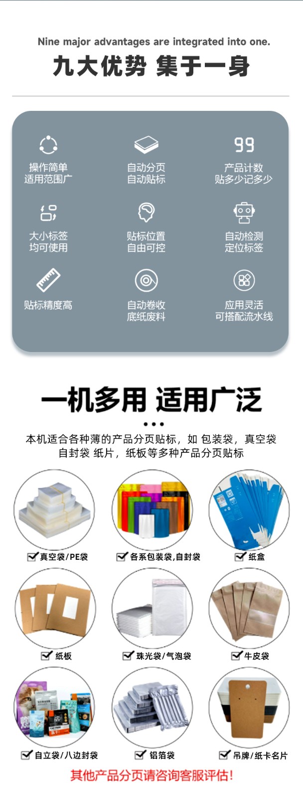 省人工成本:自動完成分頁、貼標(biāo)、覆標(biāo)全流程,1 臺設(shè)備可替代 3-5 名人工,且避免人工操作誤差。