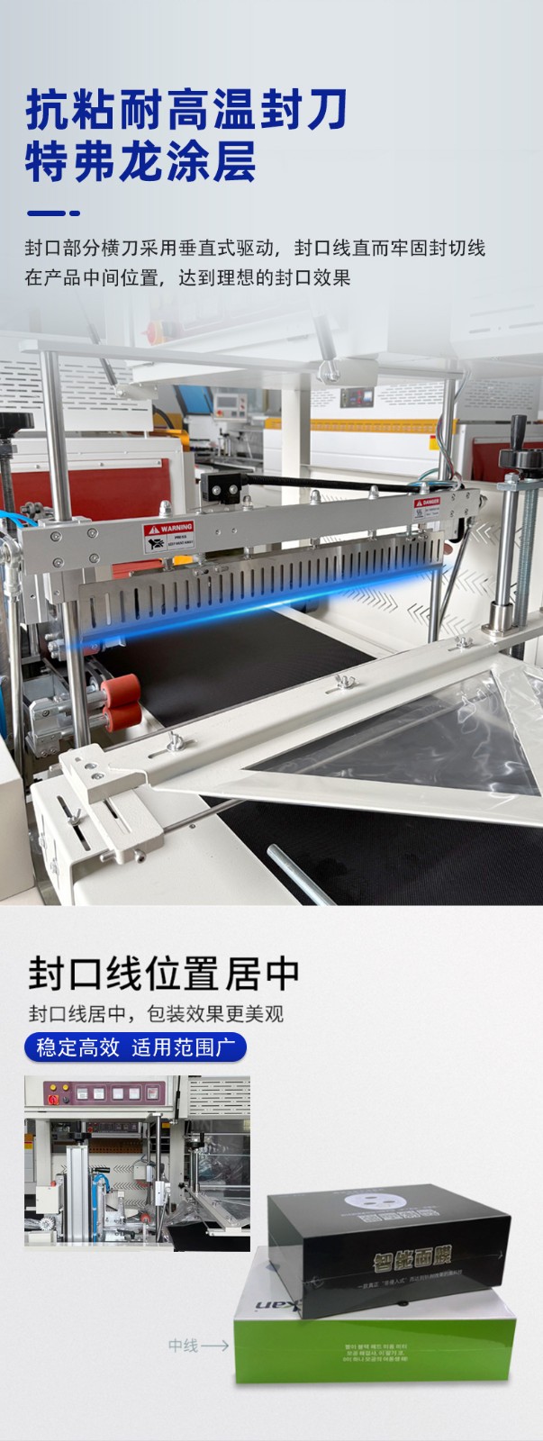 - 封口性能好:封切刀通常采用美國杜邦特弗龍防粘涂層,封口不會(huì)開裂、焦化,且?guī)в凶詣?dòng)保護(hù)功能,可防止誤切包裝物。