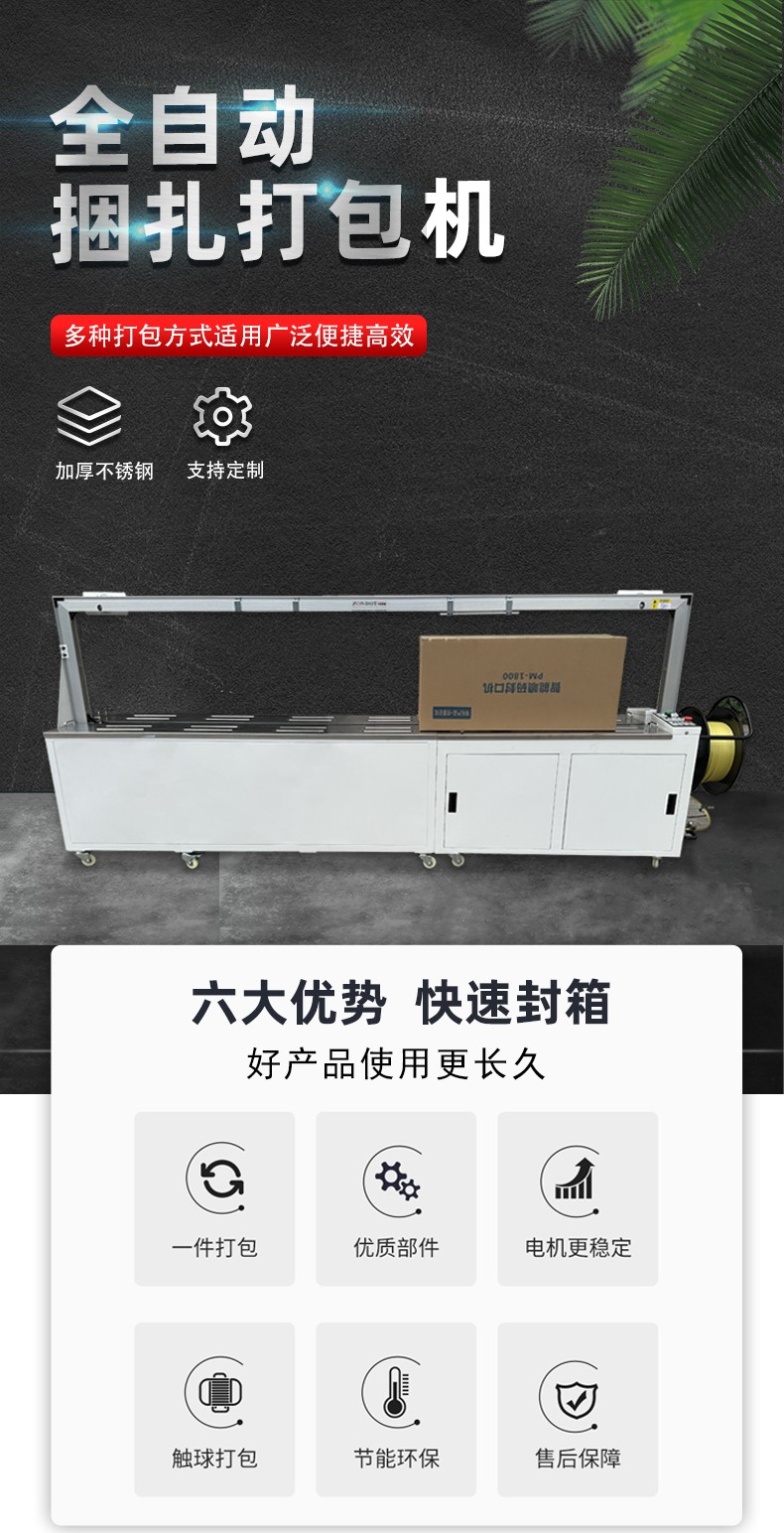 - 能自動完成送帶、捆扎、切帶等一系列打包流程,無需人工頻繁操作,大大提高了打包效率,可實現(xiàn)每分鐘多包的打包速度,顯著提升生產(chǎn)效率。