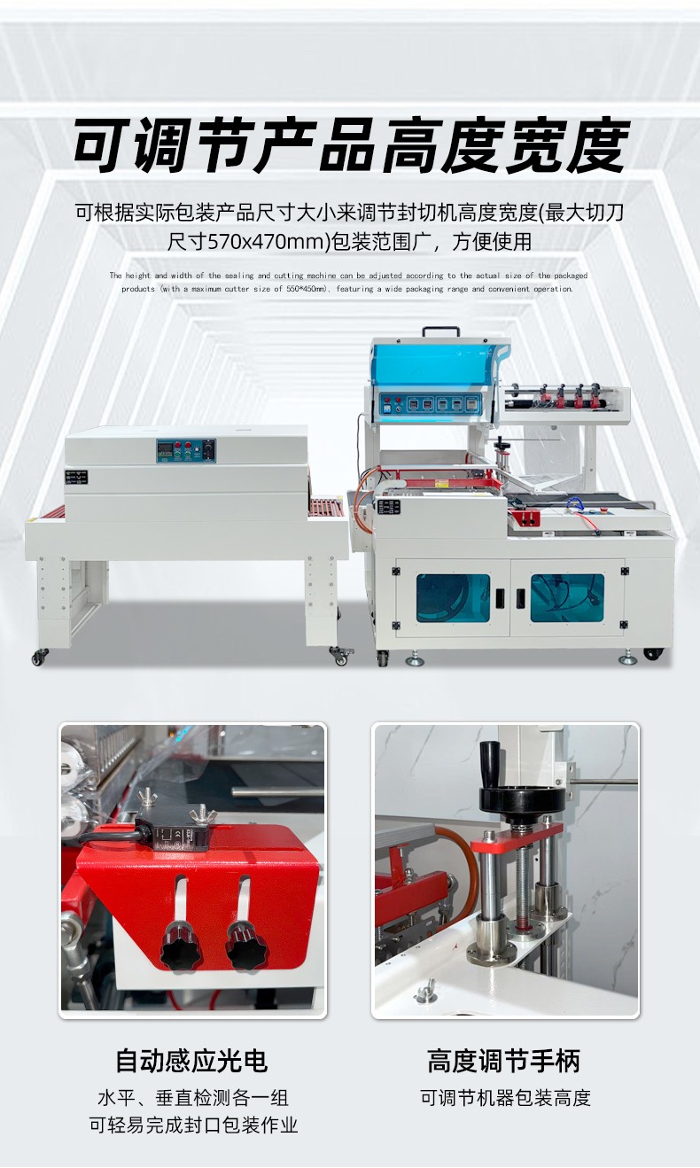- 設備可通過調(diào)節(jié) “輸送帶速度、封切溫度、收縮溫度”,適配不同尺寸產(chǎn)品(通常適用產(chǎn)品尺寸:長 50-600mm、寬 30-400mm、高 20-300mm),從小件(如口紅、藥盒)到中件(如禮盒、小家電)均可包裝。