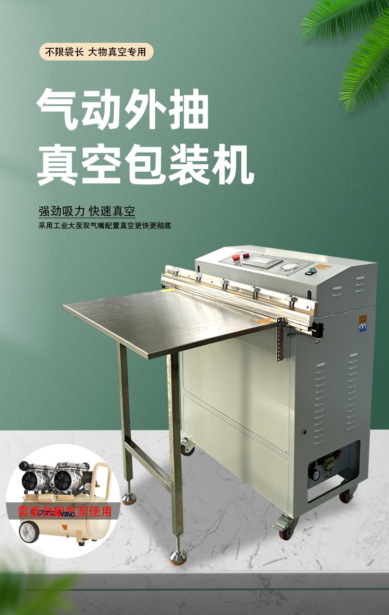 外抽真空包裝機(jī)不受包裝容器形狀和尺寸限制,無論是大型工業(yè)零部件還是小型家用物品,只要抽氣口能與抽氣嘴連接,均可進(jìn)行真空包裝