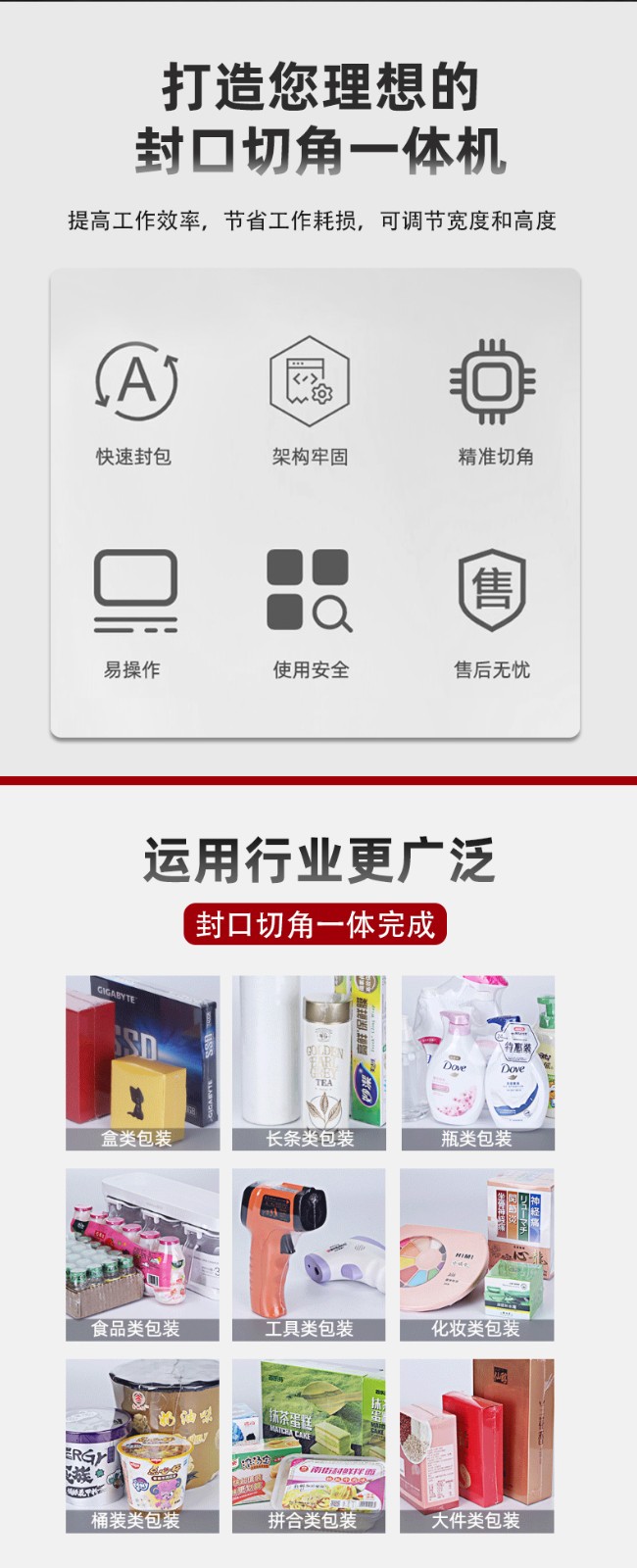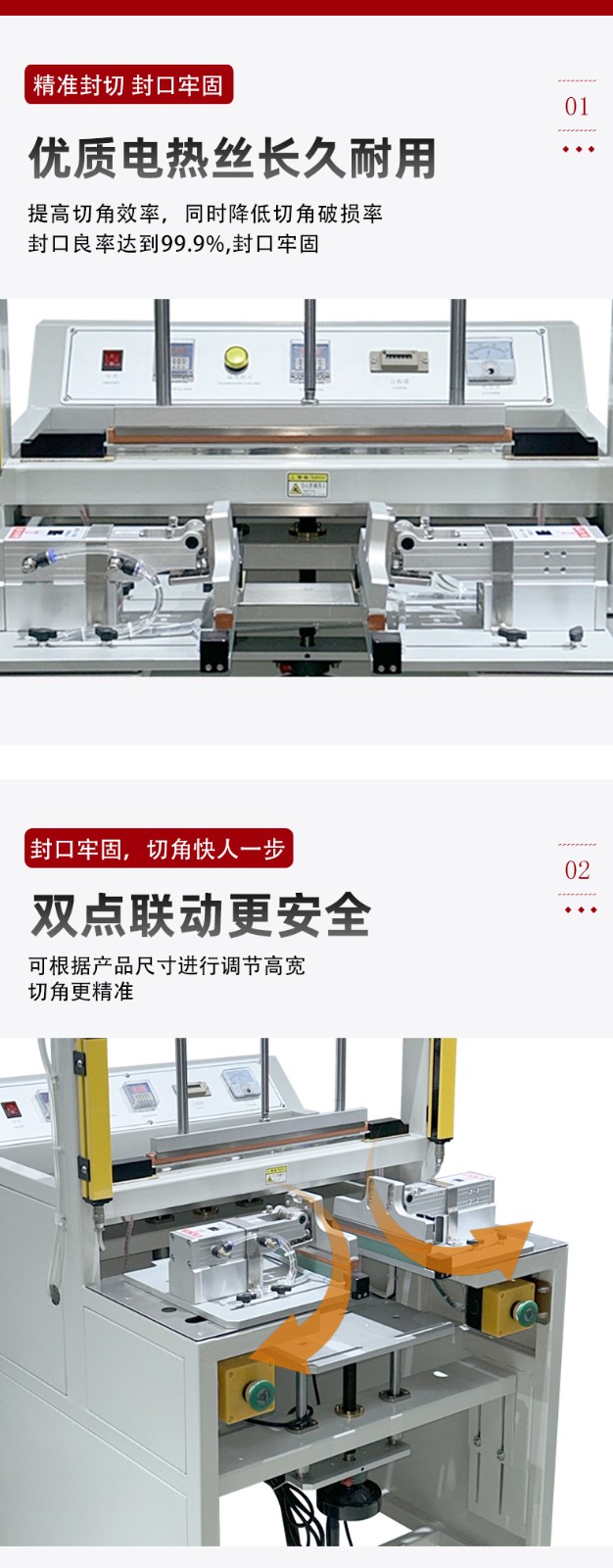 封口切角一體機是一種用于包裝行業(yè)的設(shè)備,可自動完成產(chǎn)品包裝過程中的封口和切角作業(yè),以下是關(guān)于它的介紹: